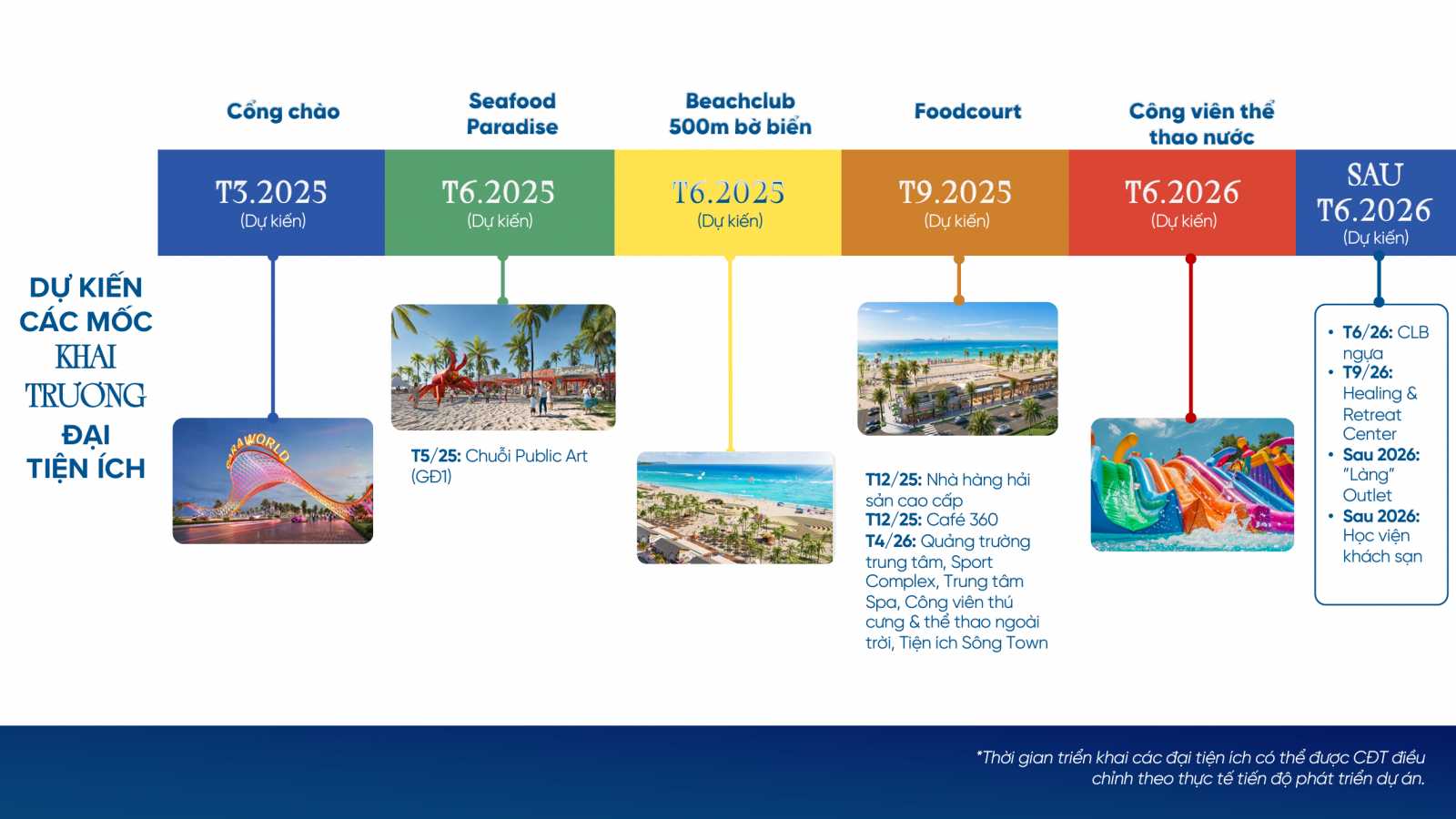 – Bãi tắm & các tiểu khu thể thao biển dài 4,7km với 5 chủ đề