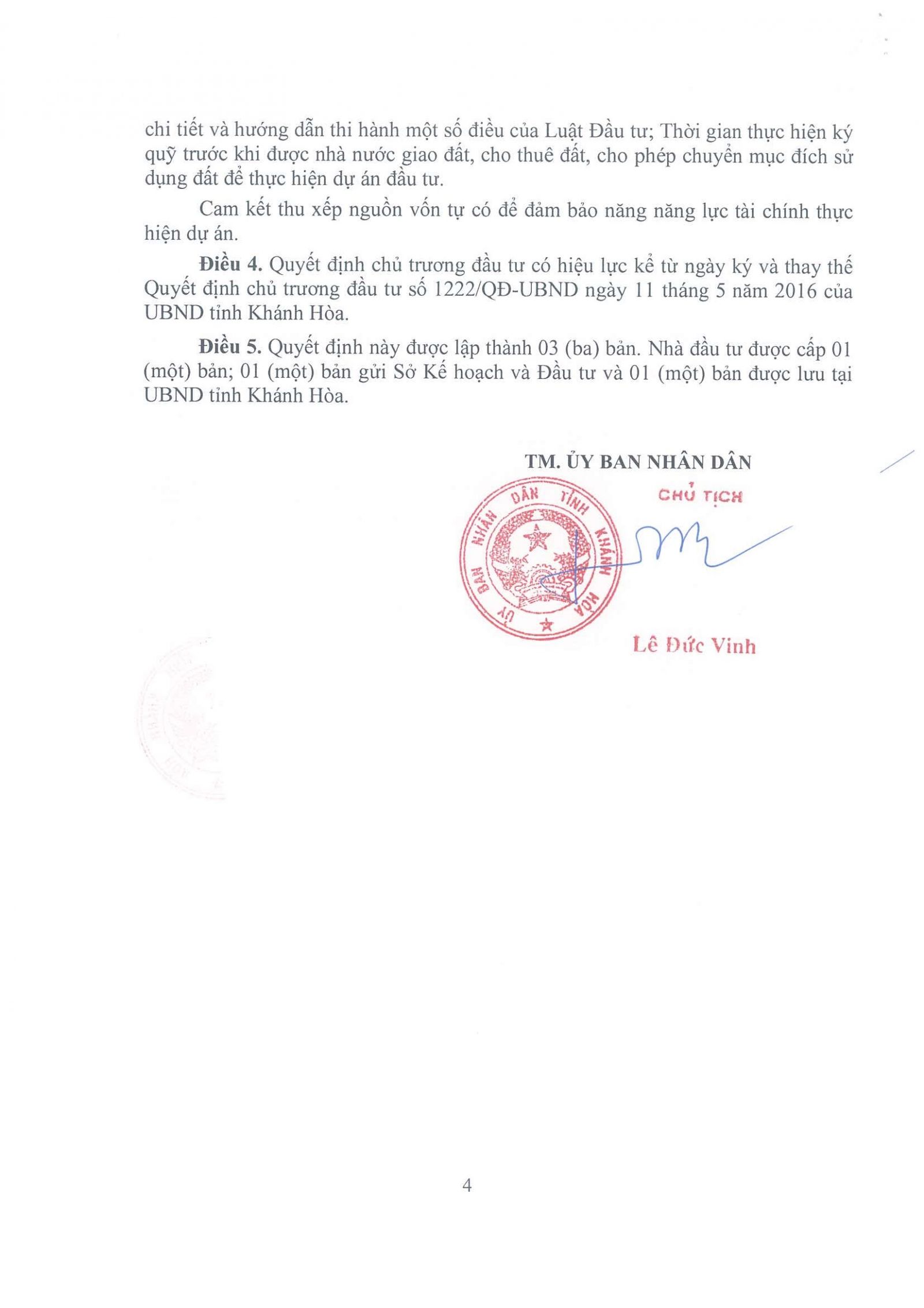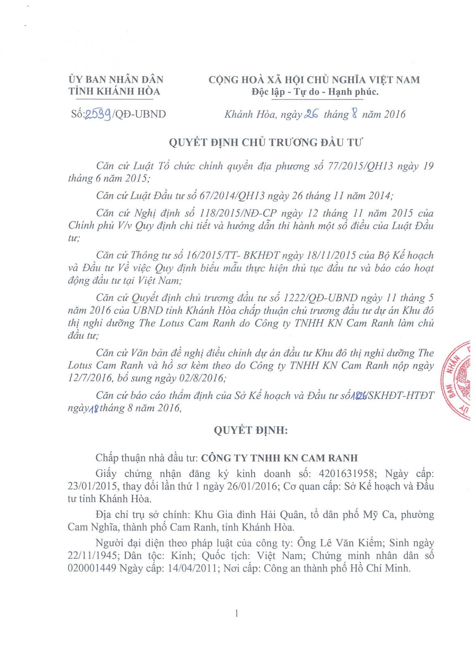 Quyết định chủ trương đầu tư số 2539 – UBND Khánh Hòa ngày 26/8/2016