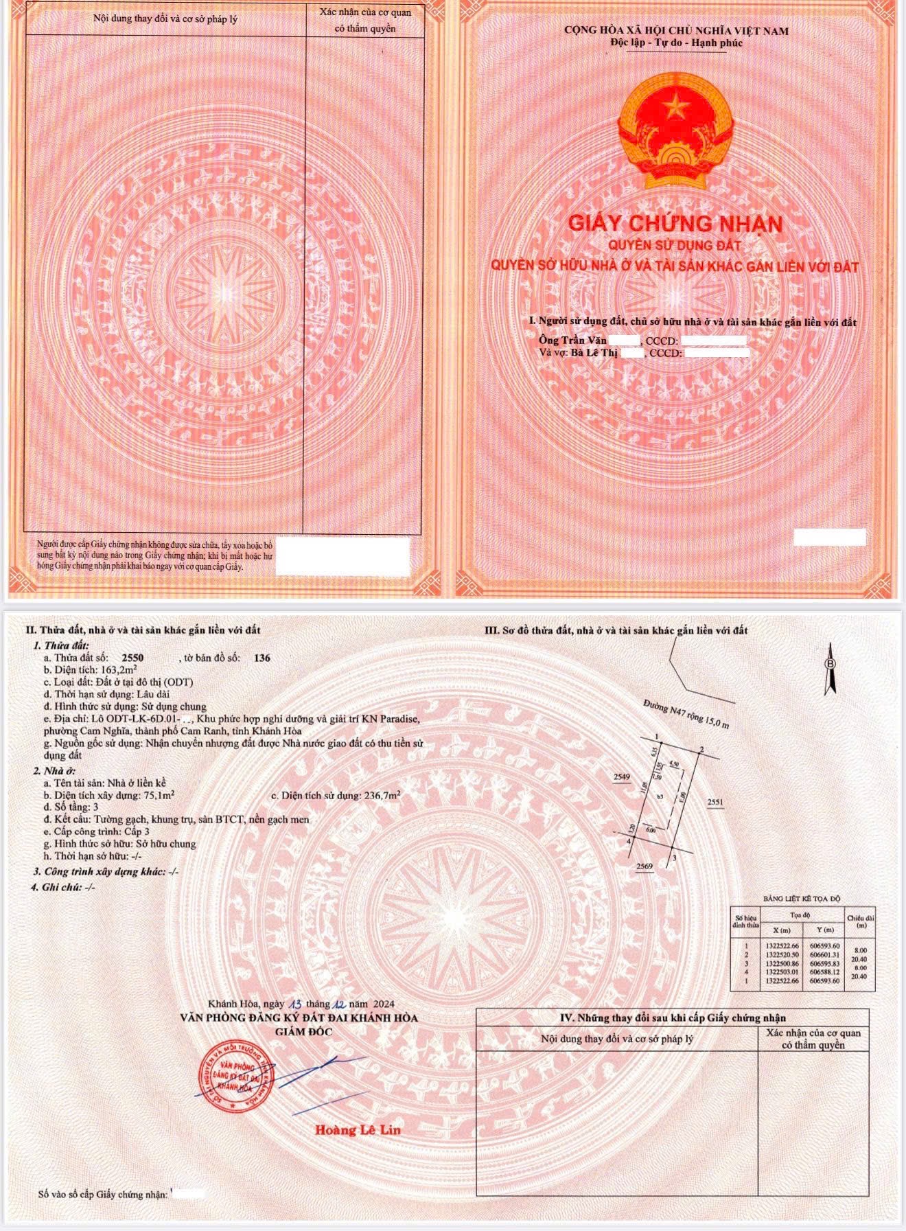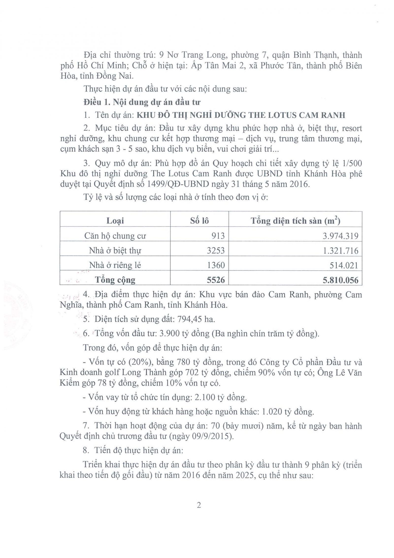 Tên trên pháp lí: Khu đô thị nghỉ dưỡng Lotus Cam Ranh